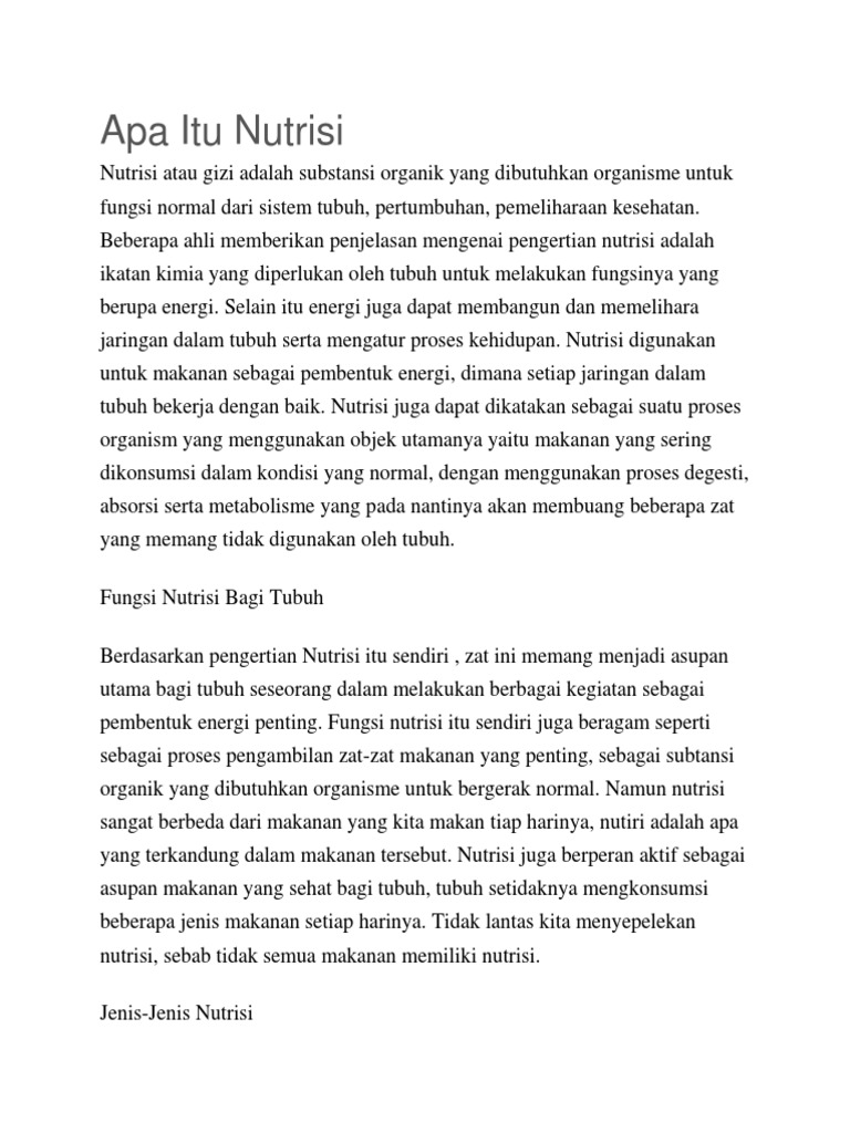 Padahal kandungan nutrisi atau gizi yang seimbang diperlukan oleh tubuh agar dapat berfungsi secara optimal dan kesehatan kita terjaga. Pada masa-masa inilah perhatian ibu terhadap pengaruh pola konsumsi makanan sepertinya harus digalakan. Apa Itu Nutrisi.